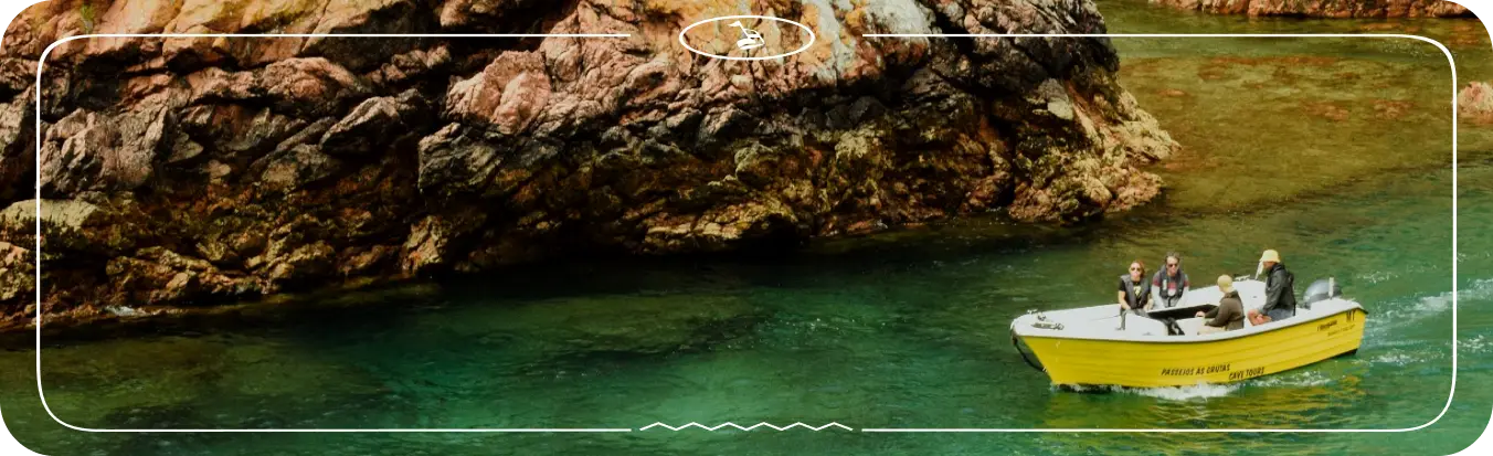 Já nas Berlengas temos um barco com fundo de vidro para visitar as grutas de forma muito cómoda e segura.